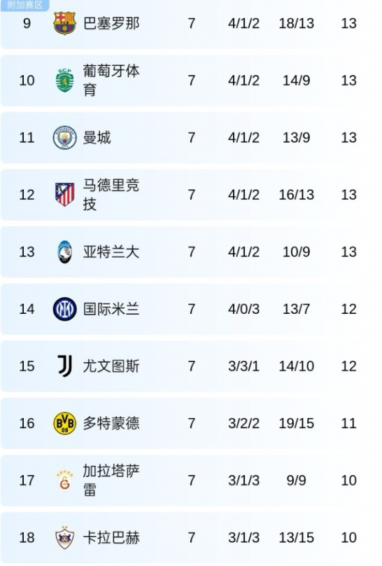 更为残酷的现实是,从积分榜第6名到第13名,多达8支球队同积13分,构成了一个庞大而拥挤的“生死区间”。国米以12分深陷其中,想要在最后一轮杀出重围,不仅需要自身在魔鬼客场击败多特蒙德,更需等待多场竞争对手的比赛出现“奇迹般”的有利赛果。